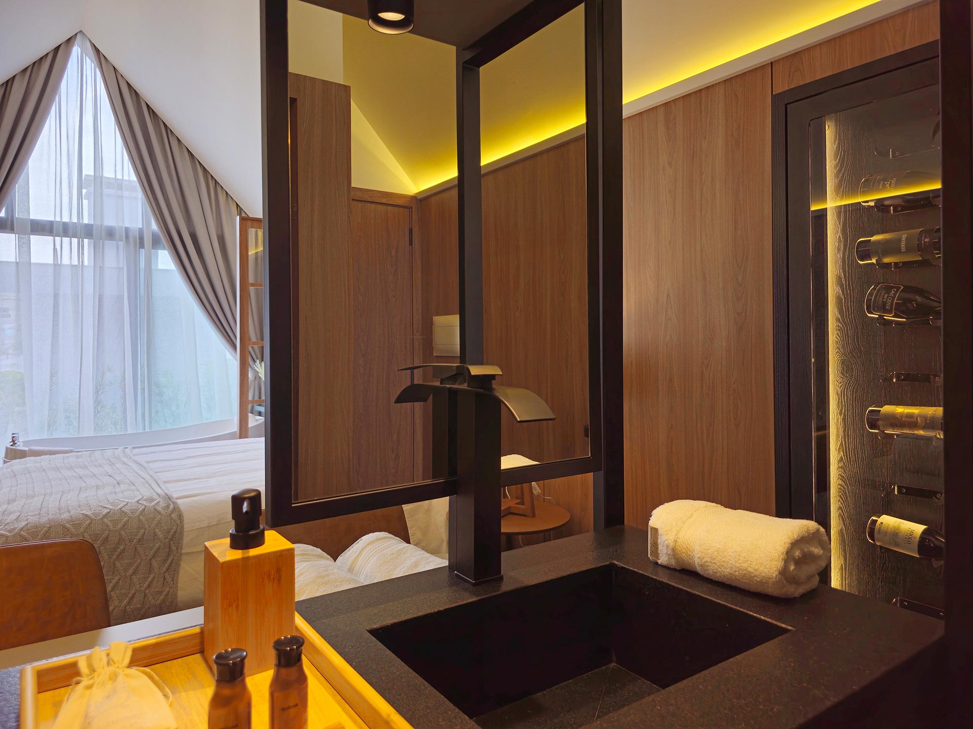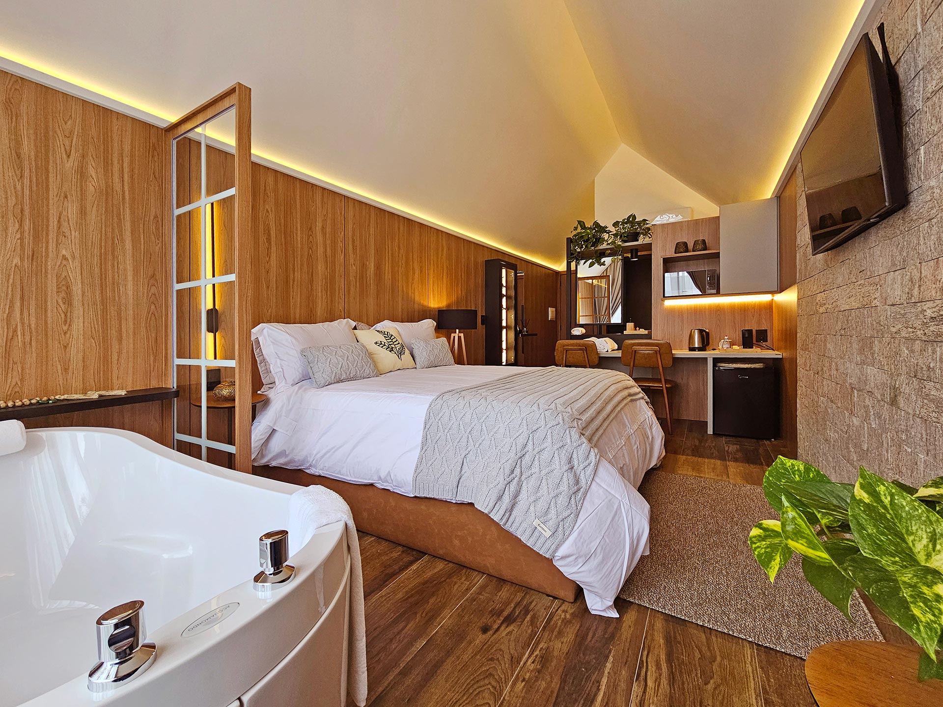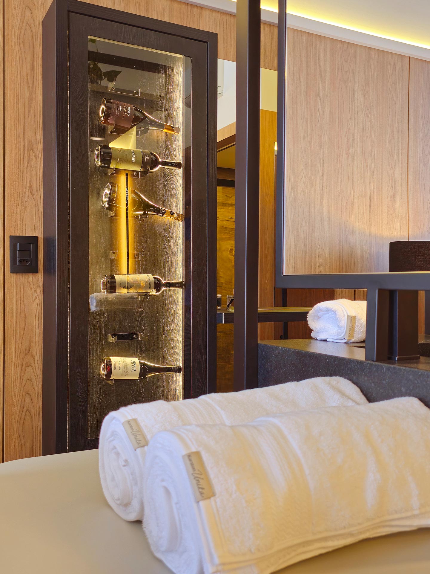 Para os apaixonados por vinho, uma experiência exclusiva o aguarda: nossa adega privativa oferece uma seleção cuidadosamente escolhida de rótulos finos e espumantes, perfeita para acompanhar conversas tranquilas, um banho relaxante ou simplesmente celebrar a vida.