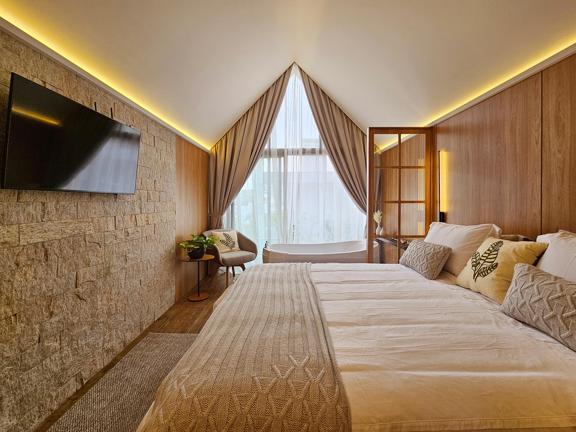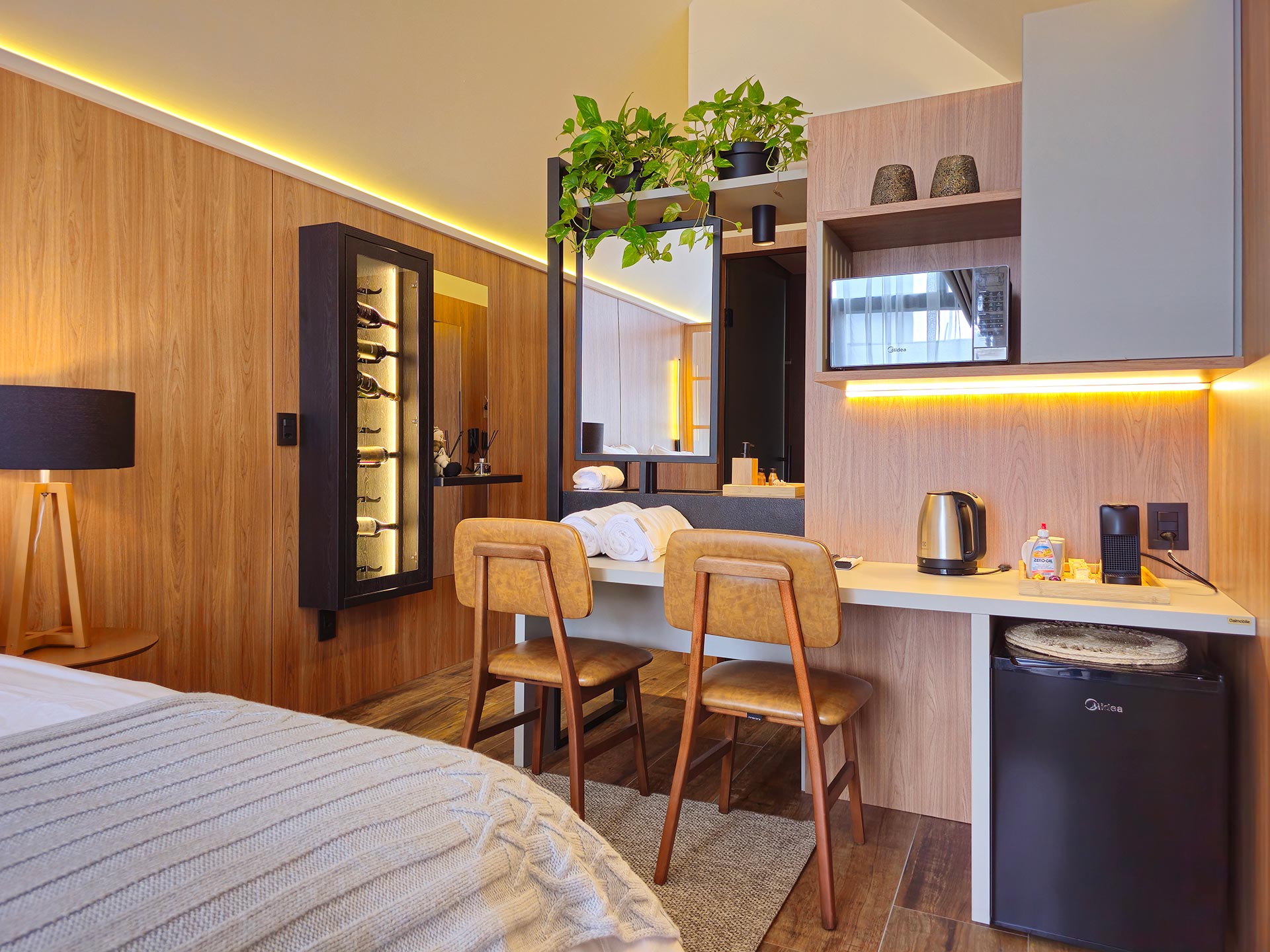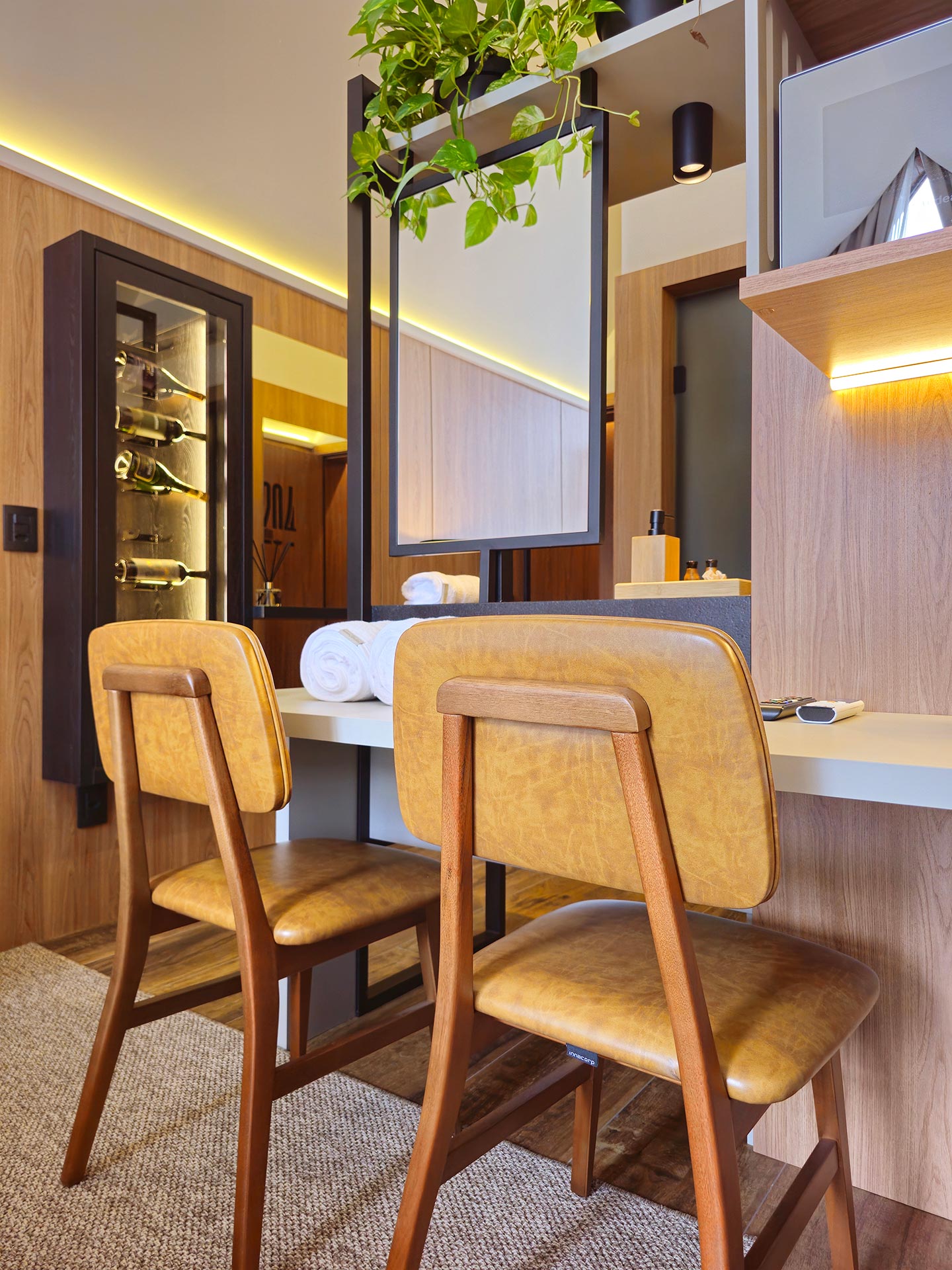 Para os apaixonados por vinho, uma experiência exclusiva o aguarda: nossa adega privativa oferece uma seleção cuidadosamente escolhida de rótulos finos e espumantes, perfeita para acompanhar conversas tranquilas, um banho relaxante ou simplesmente celebrar a vida.