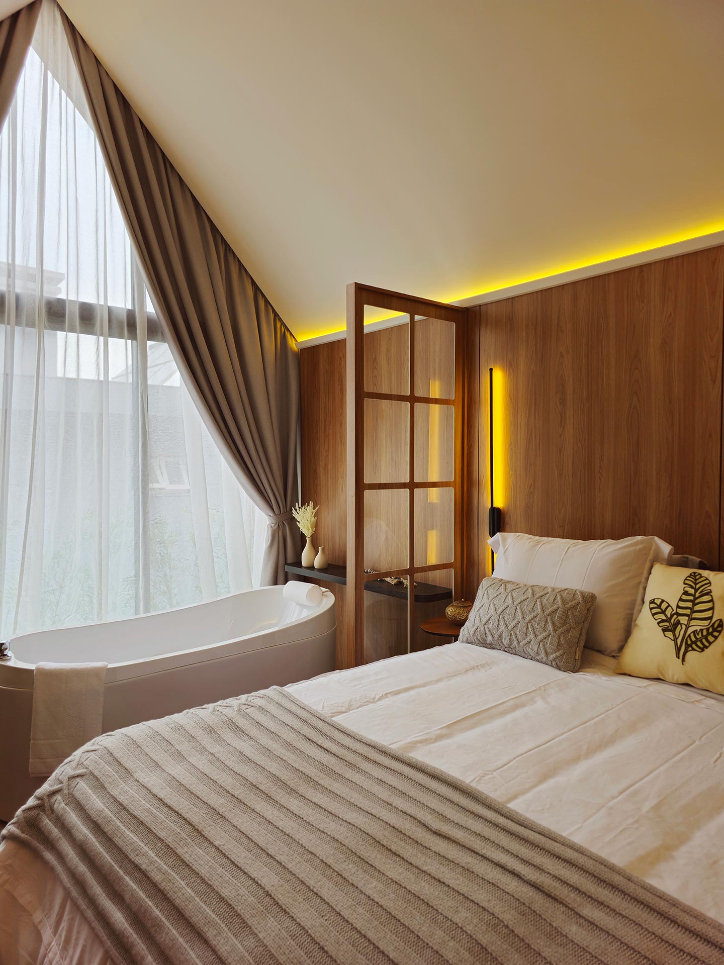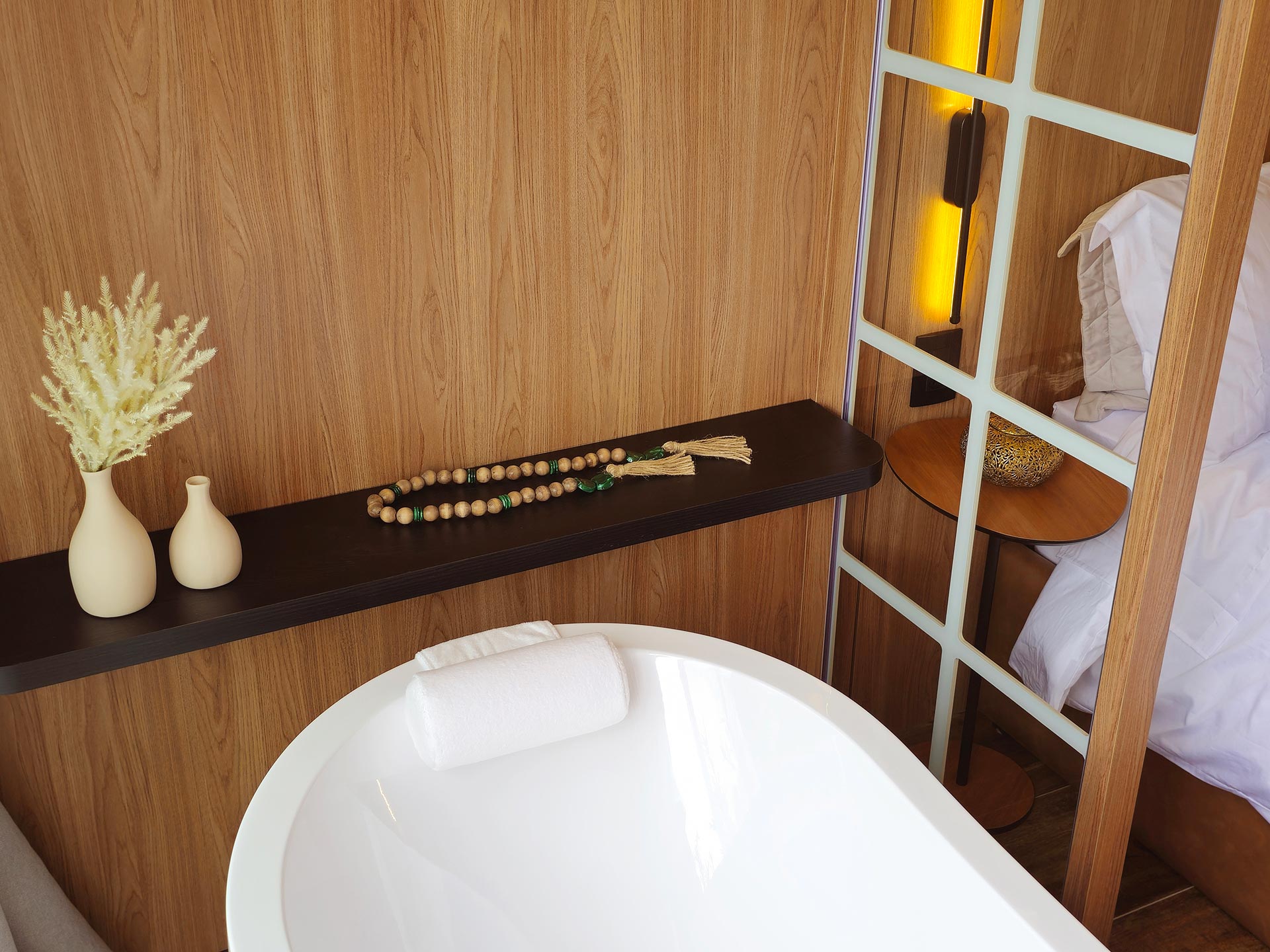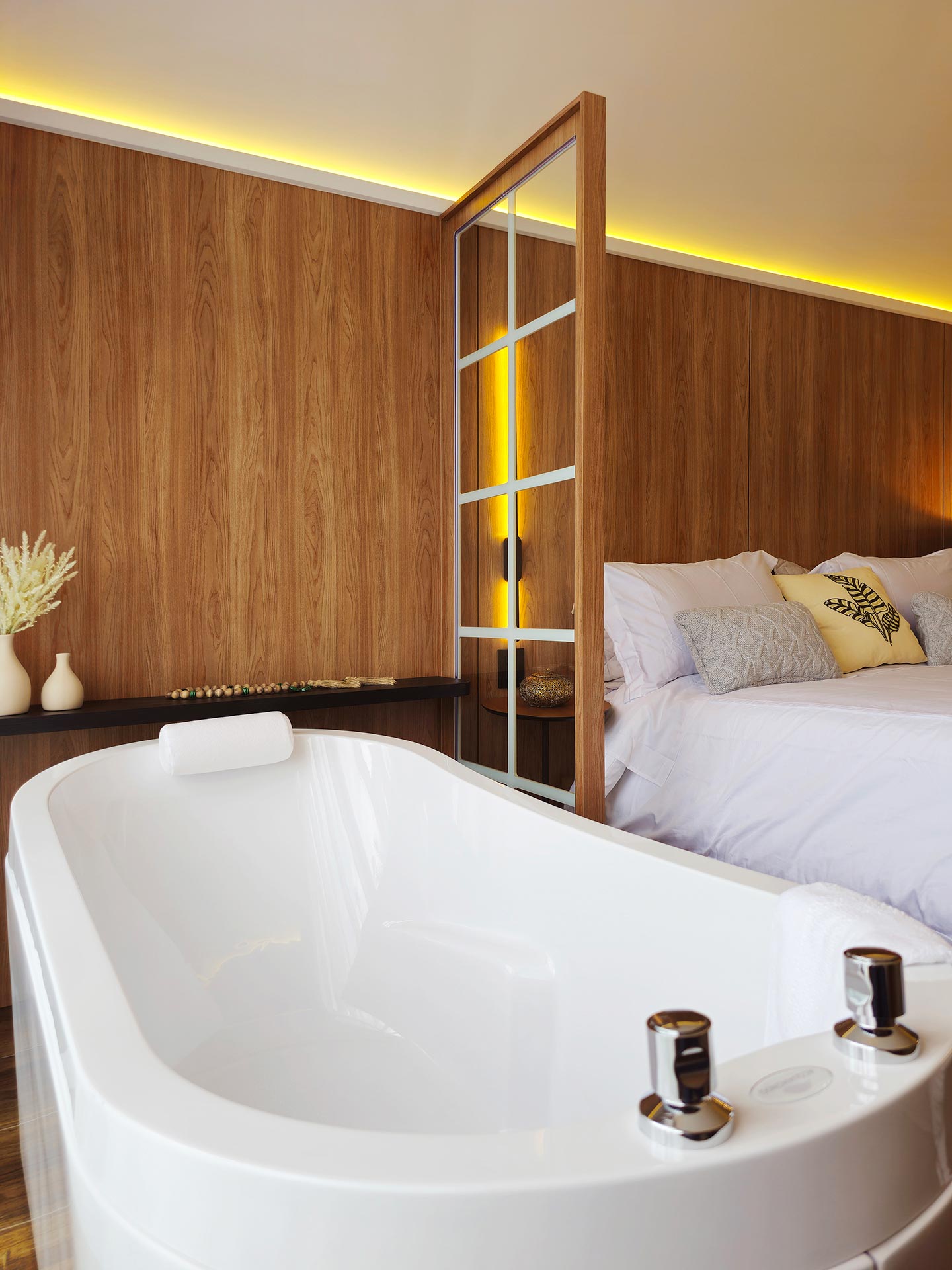 Em nossa banheira de imersão, entregue-se ao silêncio, aos aromas e à água morna que envolve cada parte do corpo. Feche os olhos, respire fundo e permita que a tensão se dissolva, dando espaço a um estado profundo de descanso e tranquilidade.